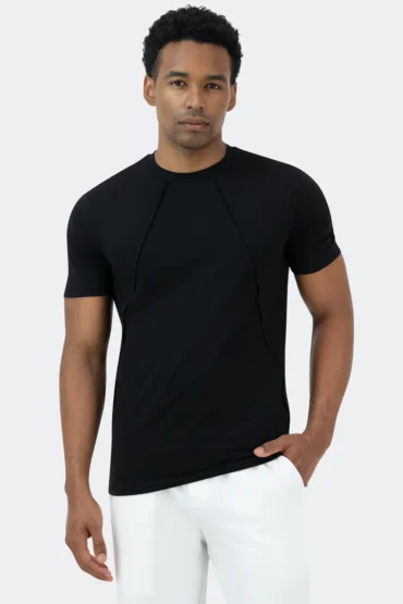 تيشيرت بقصّة سليم فيت، أساور وخصر مُضلّعين، قطن 260 GSM، مريح على الجسم