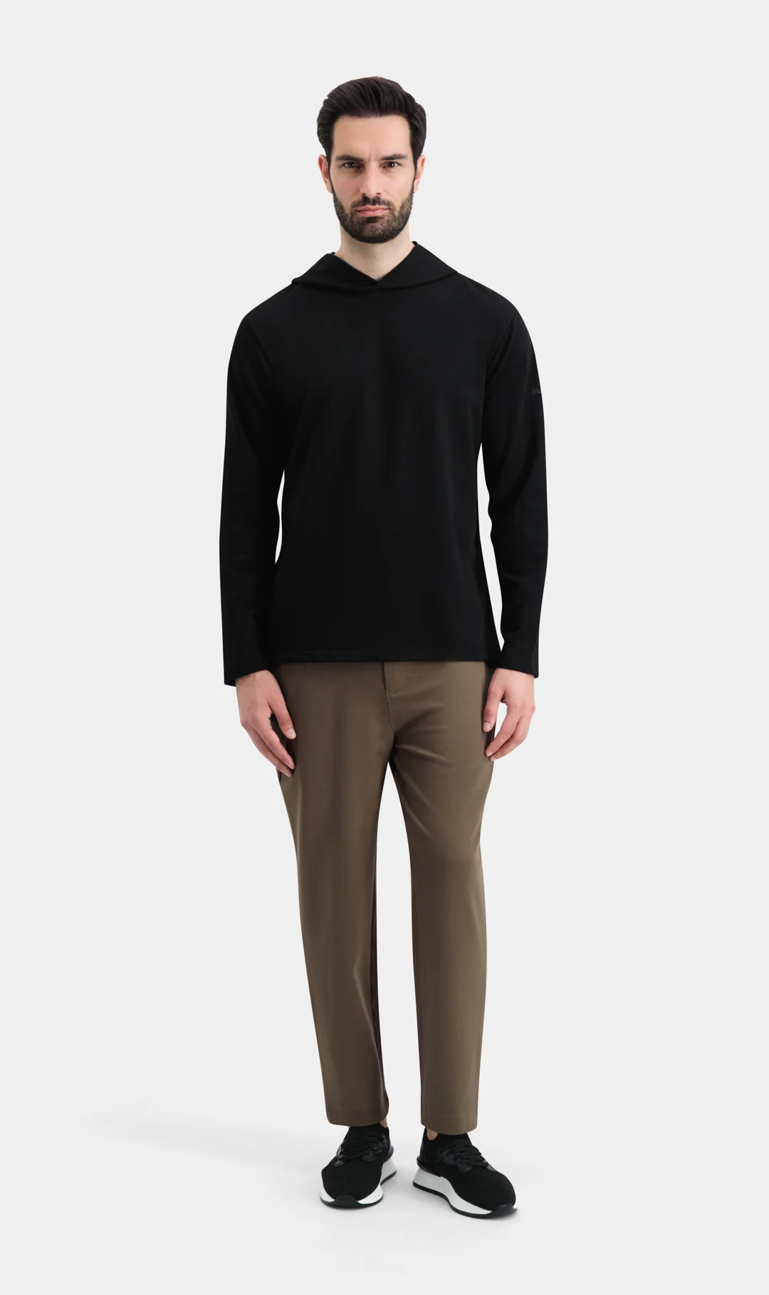 هودي بقصة عادية، بدون سحاب، بأكمام طويلة. شعار بارز على الجانب