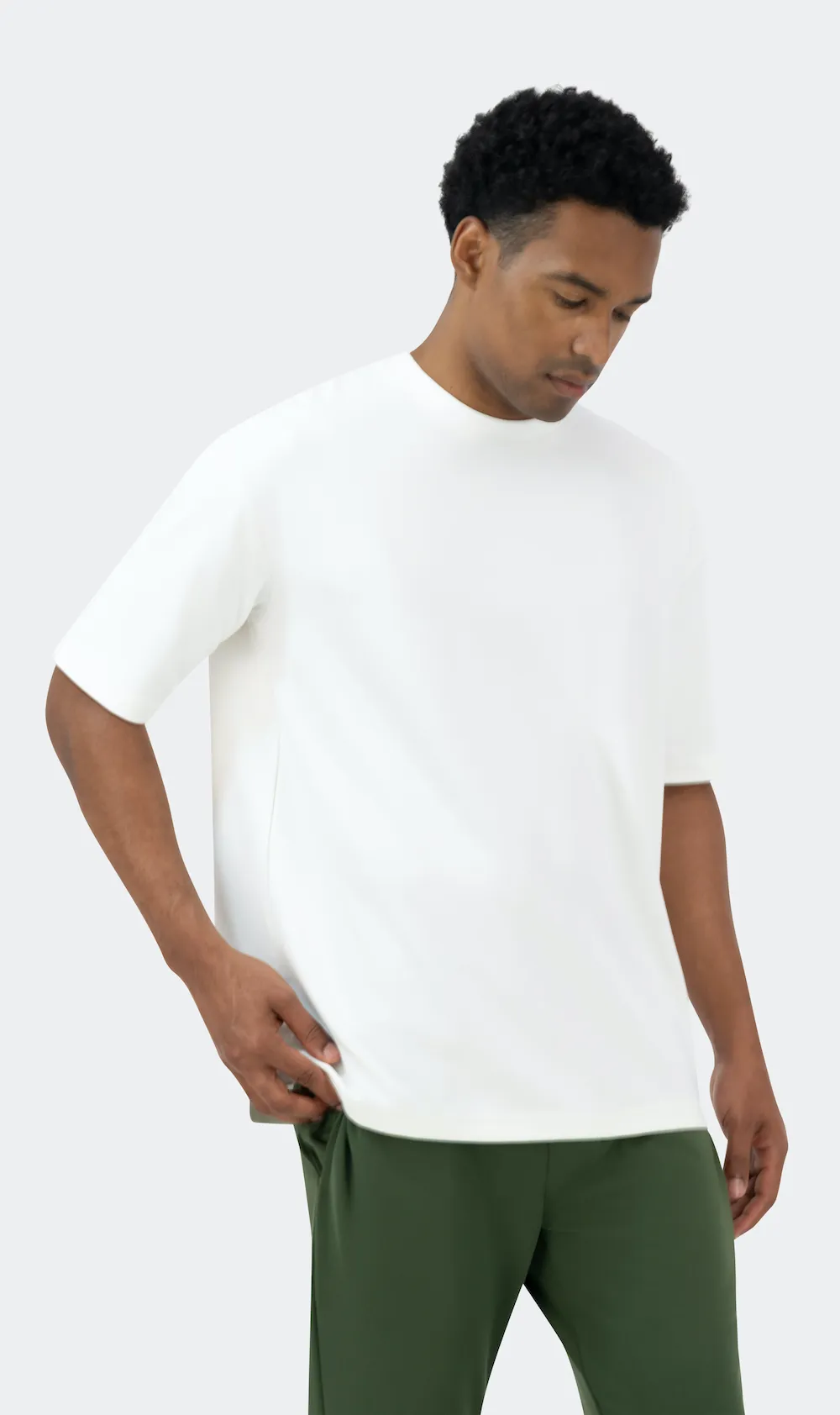 تيشيرت أوفرسايز متطابق، قطن ثقيل، تصميم كتف منخفض