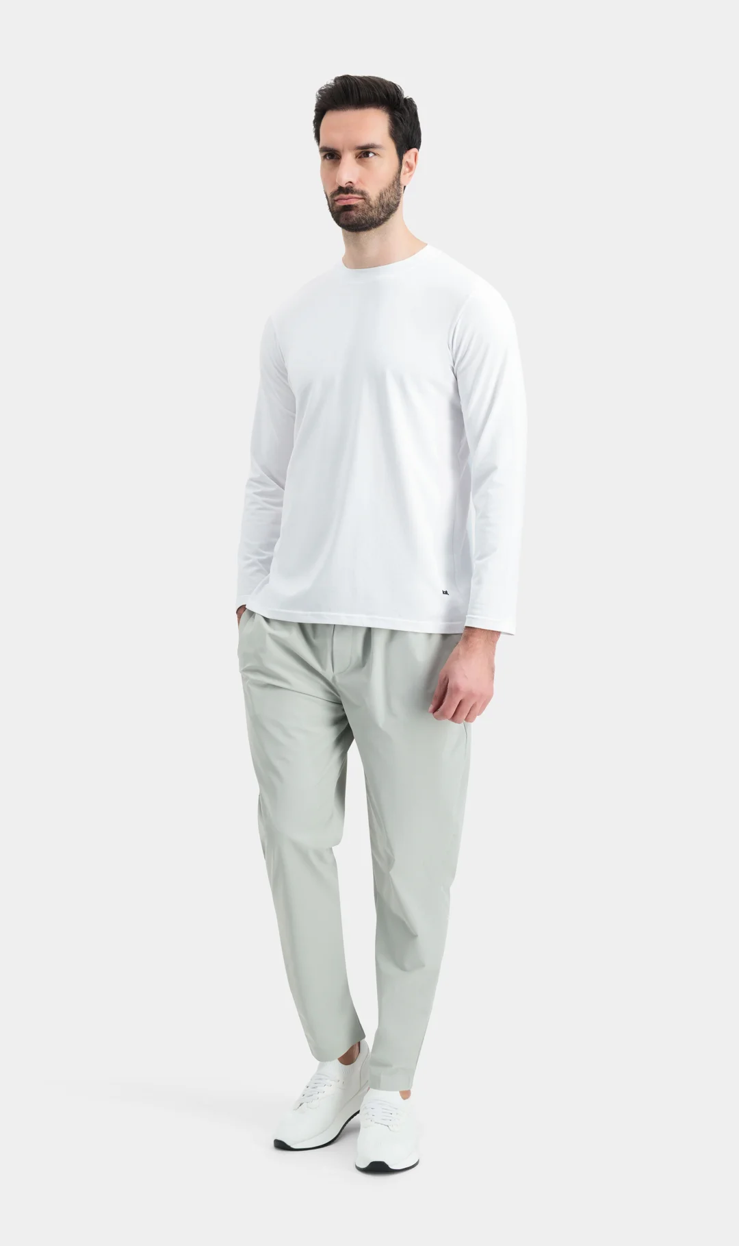 SLIM ROUND NECK TSHIRT , LONG SLEEVE , STRAIGHT HEM, LOGO EMBOSSED