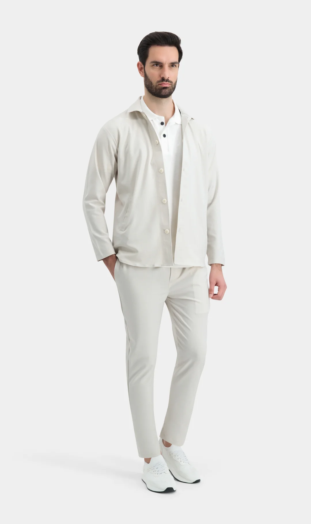 REGULAR FIT JACKET , WITH TWO POCKETS BUTTONED. SLEEVE BUTTONED ,ROOM FOR LAYERING. COMFORT WEATHER