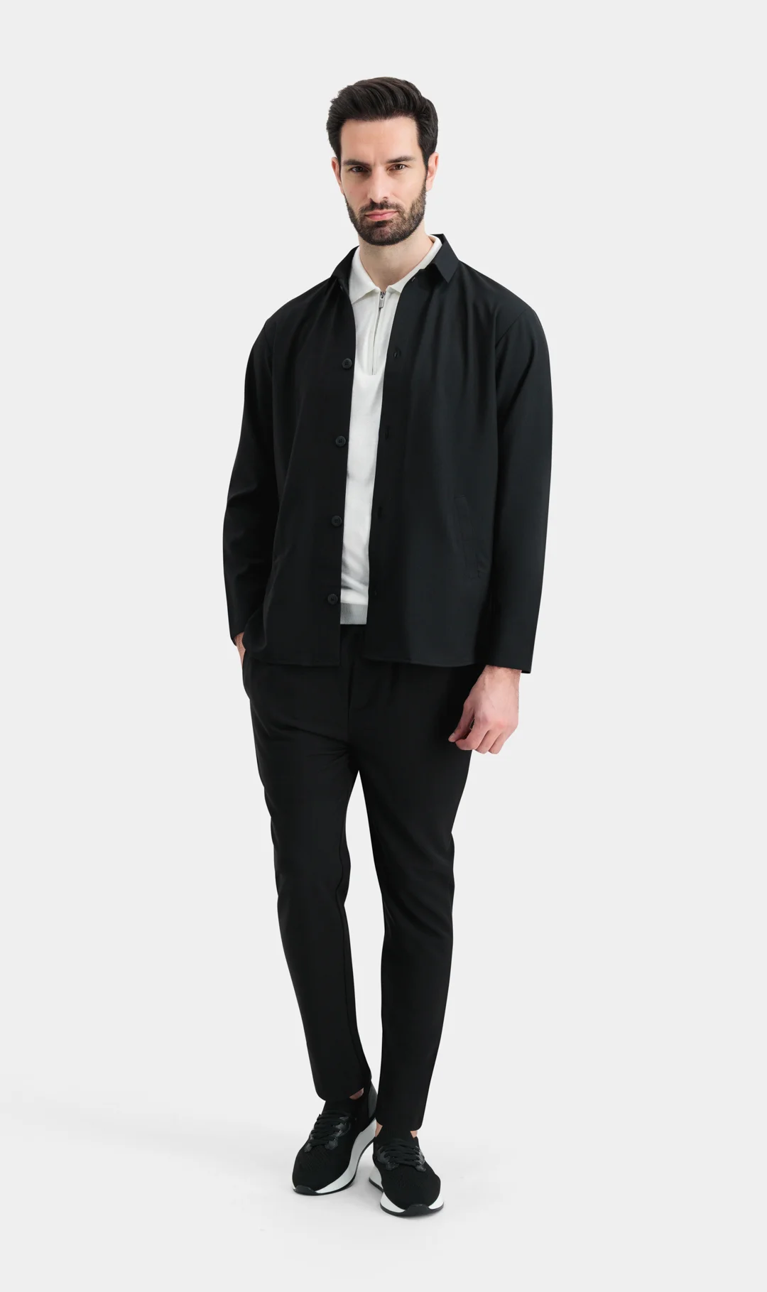 REGULAR FIT JACKET , WITH TWO POCKETS BUTTONED. SLEEVE BUTTONED ,ROOM FOR LAYERING. COMFORT WEATHER